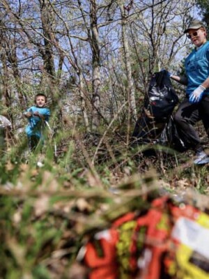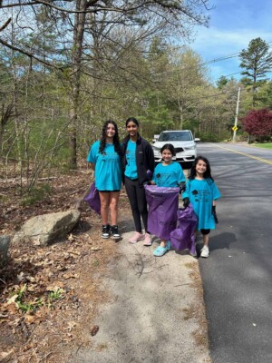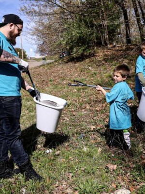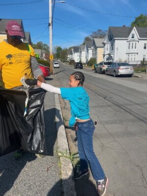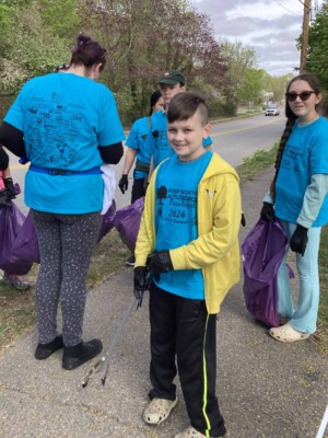Community volunteers, including children and adults, gather to clean up litter during the Great America Cleanup 2025, supporting Keep North Attleborough Beautiful initiatives.